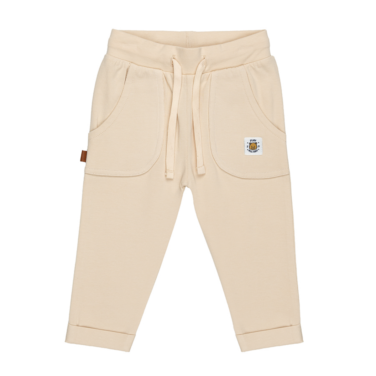 Deze joggers zijn perfect voor nieuwsgierige kleintjes die altijd onderweg zijn. De grote patchzakken aan de voorkant geven ze een speelse uitstraling en zijn ideaal voor het opslaan van kleine schatten of speelgoed. Een van de zakken heeft een vrolijk klein label met een berengezicht en de woorden "Speel de hele dag" een subtiel detail dat perfect bij de energieke geest van je mini past. De stof is zacht, flexibel en comfortabel, met een elastische tailleband en trekkoord om te zorgen voor een goed passende pasvorm. Geweldig voor binnenliggen of buitenavonturen. Details Grote patchzakken op de voorste elastische tailleband met trekstringlabel met berengezicht en "Speel de hele dag" op een van de vakken gevouwen zoom bij de enkels zorginstructies: was binnenstebuiten bij 40 ° C praktisch, zacht en speelklaar, deze joggers zijn gemaakt voor actie.